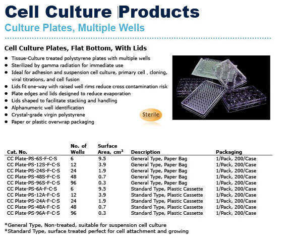 Home Up Call me back Contents Contact Immunology / Infectious agents / Cellular Biology / Molecular biology / Instruments / Lentiviral Technology / RNAi Libreries / Stem Cell Research / MicroRNA / Proteomics / Chemicals / Campaign / AntibodiesASSAY PLATES FOR HIGH THROUGHPUT SCREENING ASSAY PLATES - DEEP WELL TISSUE CULTURE PLATES CENTRIFUGE TUBES AND CRYOGENIC VIALS ELISA PLATES INOCULATING LOOPS AND NEEDLES ASSAY PLATES - FOR SPHEROTECH MAGNETIC SEPARATORS PCR PLATES PCR TUBE STRIPS AND CAPS SEROLOGICAL AND TRANSFER PIPETS SYRINGE DRIVEN FILTERS PREMIUM CELL CULTURE PLATES CRYSTALLIZATION MICROPLATES TISSUE CULTURE PLATES