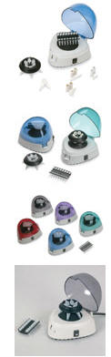 Requiring less than six inches of bench space, the Spectrafuge Mini is supplied with rotors and adapters to accommodate 1.5 ml, 0.5 ml and 0.4 ml tubes as well as 0.2 ml strips and individual tubes. The standard and strip tube rotors are easily interchanged.